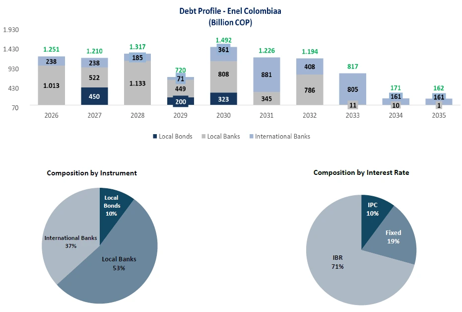 - COP 660 billion with Banco Davivienda on December 22, 2025, with a term of 5 years. The funds received were used to prepay two outstanding financial obligations in full.