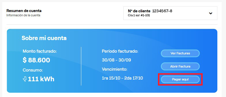 2. Selecciona la cuenta que está pendiente por pago y haz clic en la opción “Pagar aquí”