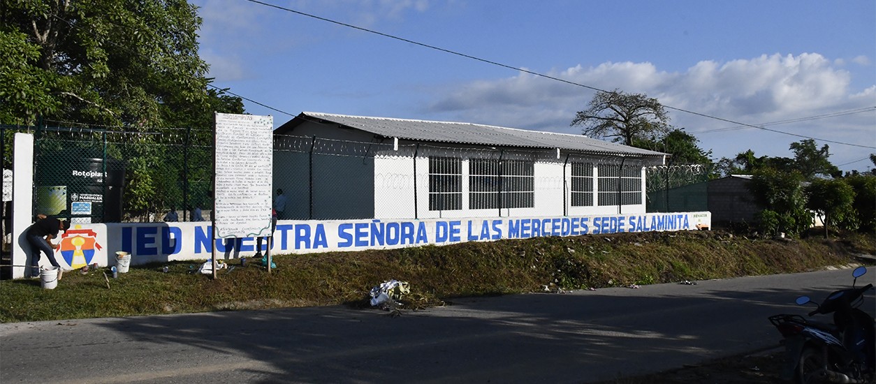 Por el otro, en la Institución Departamental Piñuela, Nuestra Señora de las Mercedes - Sede Nueva Esperanza Salaminita, se llevó a cabo la construcción del cerramiento perimetral de cerca de 746 mts2 y las puertas de acceso a la escuela, con el objetivo de mejorar las condiciones de seguridad para que los niños tomen sus clases.